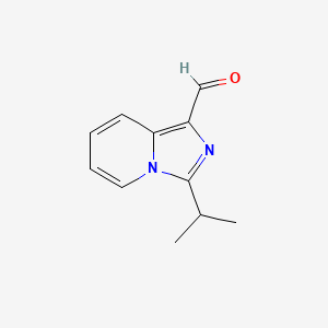 3-Isopropylimidazo[1,5-a]pyridine-1-carbaldehyde is a heterocyclic compound featuring a fused imidazole and pyridine ring system with an isopropyl substituent at the 3-position and a formyl group at the 1-position. This compound belongs to the imidazo[1,5-a]pyridine family, renowned for its versatility in medicinal chemistry, materials science, and chemical biology .