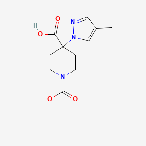 1-(tert-Butoxycarbonyl)-4-(4-methyl-1H-pyrazol-1-yl)-4-piperidinecarboxylic acid is a useful research compound. Its molecular formula is C15H23N3O4 and its molecular weight is 309.36 g/mol. The purity is usually 95%.