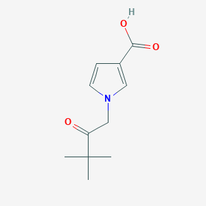 1-(3,3-Dimethyl-2-oxobutyl)-1H-pyrrole-3-carboxylic acid is a pyrrole derivative that has garnered attention due to its potential biological activities. Pyrrole compounds are known for a variety of pharmacological properties, including antimicrobial, anti-inflammatory, and anticancer effects. This article reviews the biological activity of this specific compound, focusing on its synthesis, biological evaluations, and potential therapeutic applications.