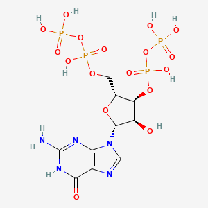 This compound is a purine nucleotide characterized by four phosphate groups attached to the ribose moiety. It is synthesized from guanosine diphosphate (GDP) and adenosine triphosphate (ATP) and serves as an important regulatory molecule in cellular processes, especially under stress conditions.