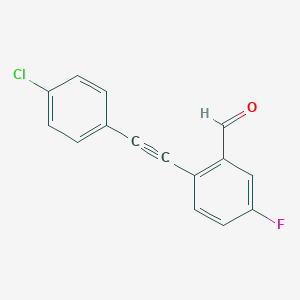 2-((4-Chlorophenyl)ethynyl)-5-fluorobenzaldehyde is a useful research compound. Its molecular formula is C15H8ClFO and its molecular weight is 258.67 g/mol. The purity is usually 95%.