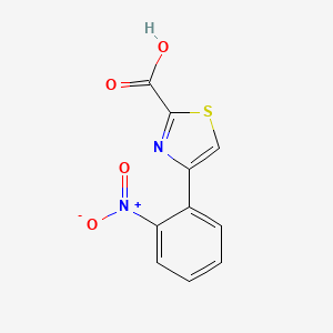 This compound stands as a remarkable example of modern heterocyclic chemistry, combining the fundamental thiazole ring system with strategically positioned functional groups that enhance its chemical reactivity and potential applications. The compound's systematic name reflects its complex molecular architecture, where a 2-nitrophenyl substituent occupies the 4-position of the thiazole ring, while a carboxylic acid group is attached at the 2-position of the same heterocyclic core. This specific substitution pattern creates a molecule with distinctive electronic properties that result from the interplay between the electron-withdrawing nitro group and the electron-donating characteristics of the thiazole sulfur atom.