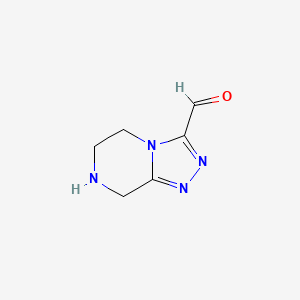 The synthesis of 5,6,7,8-Tetrahydro-[1,2,4]triazolo[4,3-a]pyrazine-3-carbaldehyde typically involves the cyclization of appropriate precursors under specific conditions. One common method starts with the reaction of 2-chloropyrazine with hydrazine hydrate, followed by cyclization and reduction steps . The reaction conditions often involve heating and the use of solvents like ethanol .