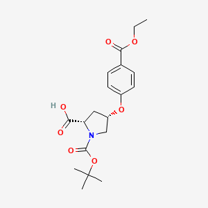 (2S,4S)-1-(tert-Butoxycarbonyl)-4-[4-(ethoxy-carbonyl)phenoxy]-2-pyrrolidinecarboxylic acid, with CAS number 1354487-00-5, is a synthetic compound characterized by its unique molecular structure and potential biological activities. This compound has garnered interest in medicinal chemistry due to its structural similarity to biologically active molecules and its potential therapeutic applications.