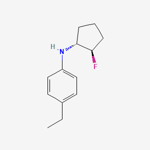 4-ethyl-N-[(1R,2R)-2-fluorocyclopentyl]aniline is a chiral aniline derivative featuring a 4-ethyl substituent on the aromatic ring and a fluorinated cyclopentyl group attached to the nitrogen atom.