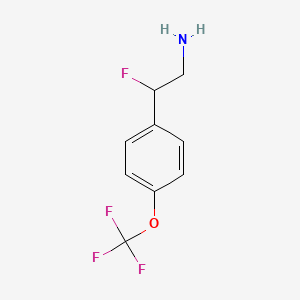 2-Fluoro-2-[4-(trifluoromethoxy)phenyl]ethan-1-amine is a fluorinated organic compound characterized by its distinctive chemical structure, which includes both fluorine and trifluoromethoxy functional groups. These features contribute to its unique properties, making it valuable in various scientific and industrial applications.