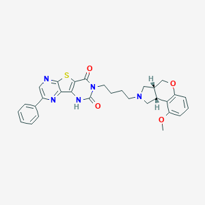 COC1=CC=CC2=C1[C@@H]3CN(C[C@@H]3CO2)CCCCN4C(=O)C5=C(C6=NC(=CN=C6S5)C7=CC=CC=C7)NC4=O | |