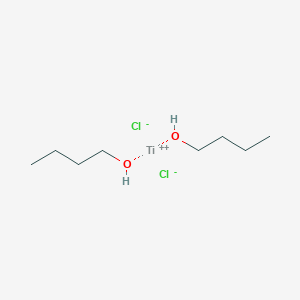 The mechanism by which butan-1-ol;titanium(2+);dichloride exerts its effects involves the coordination of butan-1-ol to the titanium(2+) ion, which facilitates various chemical transformations. The molecular targets and pathways involved depend on the specific application. For example, in catalysis, the titanium center can activate substrates for subsequent reactions, while in material science, the compound can influence the properties of the resulting materials .