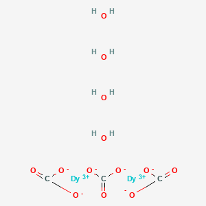 Unlike many dysprosium salts, Dy₂(CO₃)₃·4H₂O is insoluble in water, making it suitable for precipitation-based separations or as a precursor for solid-state reactions. This insolubility arises from its crystalline lattice structure, which minimizes ion dissociation . Researchers must use acidic media (e.g., dilute HNO₃) to dissolve the compound for solution-phase studies, ensuring compatibility with nitrate-based systems .
