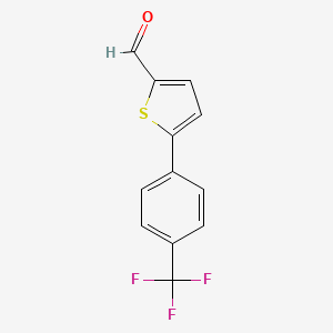 5-(4-(Trifluoromethyl)phenyl)thiophene-2-carbaldehyde: is an organic compound with the molecular formula C12H7F3OS and a molecular weight of 256.24 g/mol . This compound features a thiophene ring substituted with a trifluoromethylphenyl group and an aldehyde functional group. It is primarily used in research settings, particularly in the fields of organic chemistry and materials science.