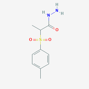 The mechanism by which 2-(Toluene-4-sulfonyl)-propionic acid hydrazide exerts its effects involves the reactivity of the sulfonyl group. This group can form stable covalent bonds with nucleophiles, making the compound useful in various chemical transformations. The molecular targets and pathways involved depend on the specific application, such as enzyme inhibition in biological systems or cross-linking in polymer chemistry.