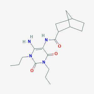 6-Amino-5-(bicyclo[2.2.1]heptan-2-yl)carbonylamino-1,3-dipropyluracil, also known as this compound, is a useful research compound. Its molecular formula is C18H28N4O3 and its molecular weight is 348.4 g/mol. The purity is usually 95%.