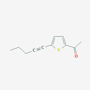 The synthesis of 1-(5-Pent-1-ynyl-2-thienyl)ethan-1-one can be achieved through several synthetic routes. One common method involves the reaction of 5-bromo-2-thiophenecarboxaldehyde with pent-1-yne in the presence of a palladium catalyst to form the corresponding 5-pent-1-ynyl-2-thiophenecarboxaldehyde. This intermediate is then subjected to a Friedel-Crafts acylation reaction with acetyl chloride to yield this compound .