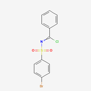 4-Bromo-N-(chloro-phenyl-methylene)-benzenesulfonamide is a chemical compound known for its applications in organic synthesis and various industrial processes. This compound is characterized by the presence of a bromobenzene sulfonyl group and a benzenecarboximidoyl chloride group, making it a versatile intermediate in the synthesis of more complex molecules.