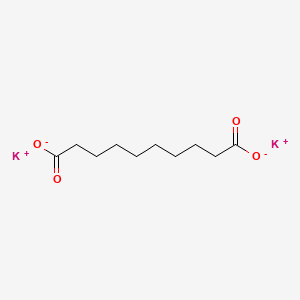 Dipotassium sebacate (C₁₀H₁₆K₂O₄) is the dipotassium salt of sebacic acid (decanedioic acid). It is a white, crystalline solid with applications in industrial lubricants, polymer stabilizers, and cosmetics due to its ionic nature and solubility in polar solvents. Its structure comprises two potassium ions bonded to the carboxylate groups of sebacic acid, enabling it to act as a buffering agent or plasticizer in formulations.