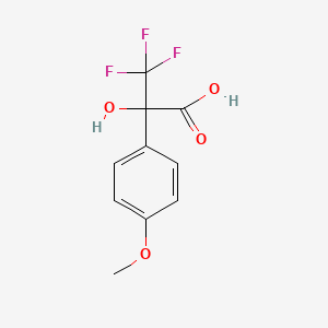 The mechanism of action of 3,3,3-Trifluoro-2-hydroxy-2-(4-methoxyphenyl)propionic acid involves its interaction with molecular targets such as enzymes and receptors. The trifluoromethyl group enhances the compound’s lipophilicity, allowing it to penetrate biological membranes more effectively. The hydroxy group can form hydrogen bonds with active site residues, influencing the compound’s binding affinity and specificity .
