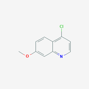 This compound is a substituted quinoline, a class of heterocyclic aromatic compounds with a wide range of biological activities. The presence of a chlorine atom at the 4-position and a methoxy group at the 7-position significantly influences its reactivity and utility as a synthetic building block.