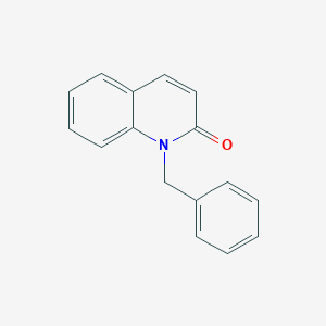 1-Benzyl-2-quinolone and its derivatives have been studied for their antimicrobial properties. Research indicates that compounds in the quinolone family can inhibit bacterial DNA gyrase, an essential enzyme for bacterial replication. For instance, hybrid compounds combining 2-quinolones with triazoles exhibited significant antibacterial activity against various strains, including Staphylococcus aureus and Escherichia coli . The structural similarity of this compound to established antibiotics like ciprofloxacin suggests potential efficacy in treating resistant bacterial infections.