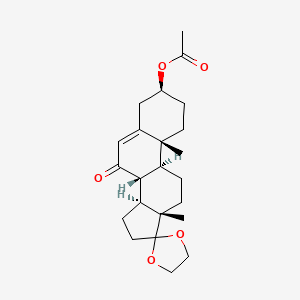 The mechanism of action of [(3’S,8’R,9’S,10’R,13’S,14’S)-10’,13’-Dimethyl-7’-oxospiro[1,3-dioxolane-2,17’-2,3,4,8,9,11,12,14,15,16-decahydro-1H-cyclopenta[a]phenanthrene]-3’-yl] acetate involves its interaction with specific molecular targets and pathways. The compound can act as a ligand, binding to receptors or enzymes and modulating their activity. This interaction can lead to changes in cellular processes and biochemical pathways, ultimately resulting in the compound’s observed effects.