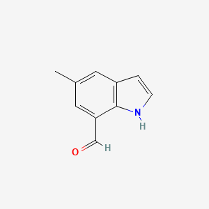 5-Methyl-1H-indole-7-carbaldehyde is an indole derivative with a methyl group at the 5-position and an aldehyde functional group at the 7-position. Indole derivatives are critical in medicinal chemistry due to their structural similarity to bioactive molecules like tryptophan and serotonin. The aldehyde group at position 7 enhances its utility as a synthetic intermediate for further functionalization, such as condensation reactions to form Schiff bases or heterocyclic scaffolds.