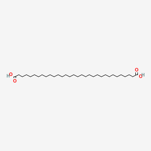 The mechanism of action of dotriacontanedioic acid involves its interaction with various molecular targets and pathways. In biological systems, it can integrate into lipid bilayers, affecting membrane fluidity and permeability. It may also interact with enzymes involved in fatty acid metabolism, influencing cellular processes such as energy production and signal transduction .