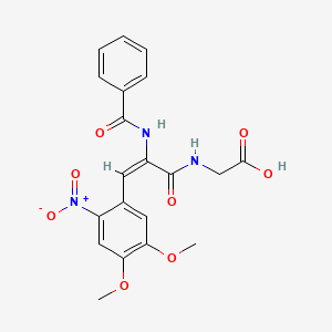 2-[[(E)-2-benzamido-3-(4,5-dimethoxy-2-nitrophenyl)prop-2-enoyl]amino]acetic acid is a useful research compound. Its molecular formula is C20H19N3O8 and its molecular weight is 429.4 g/mol. The purity is usually 95%.