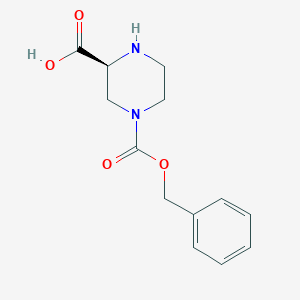 The mechanism of action of (S)-4-(Benzyloxycarbonyl)piperazine-2-carboxylic acid involves its interaction with specific molecular targets. The benzyloxycarbonyl group can be cleaved to reveal the active piperazine moiety, which can then interact with biological targets such as enzymes or receptors. The exact pathways and targets depend on the specific application and the biological system being studied.