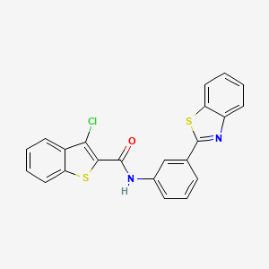 N-[3-(1,3-benzothiazol-2-yl)phenyl]-3-chloro-1-benzothiophene-2-carboxamide is a useful research compound. Its molecular formula is C22H13ClN2OS2 and its molecular weight is 420.9 g/mol. The purity is usually 95%.