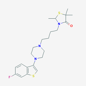 Coupling of Intermediates: The final step in the synthesis of this compound is the coupling of the 3-(4-bromobutyl)-2,5,5-trimethyl-4-thiazolidinone with 1-(6-fluorobenzo[b]thien-3-yl)piperazine. This nucleophilic substitution reaction, typically carried out in the presence of a base such as potassium carbonate and a catalyst like potassium iodide in a suitable solvent, yields the final compound, this compound. ebi.ac.uk