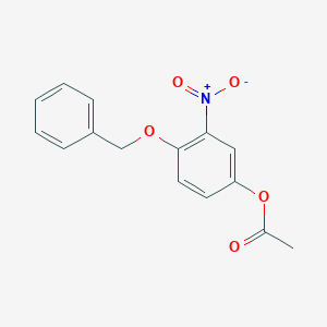 The hydrolysis of acetate esters, such as 4-Benzyloxy-3-nitrophenyl acetate, is a fundamental reaction in organic chemistry, often utilized for the deprotection of alcohol or phenol functionalities. nii.ac.jp The reactivity of the ester group towards hydrolysis is significantly influenced by the electronic nature of the substituents on the aromatic ring. In the case of this compound, the presence of the electron-withdrawing nitro group at the meta-position to the acetate group enhances the electrophilicity of the carbonyl carbon, making it more susceptible to nucleophilic attack by water or hydroxide (B78521) ions.