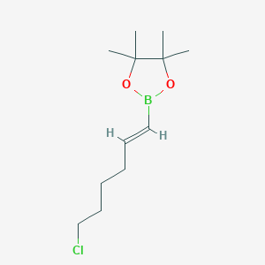 The mechanism of action of trans-6-Chloro-1-hexen-1-ylboronic acid pinacol ester involves its ability to participate in various chemical reactions due to the presence of the boronic ester group. The boronic ester can form reversible covalent bonds with diols and other nucleophiles, making it a versatile intermediate in organic synthesis . The molecular targets and pathways involved depend on the specific reactions and applications being studied .