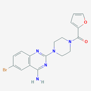 The synthesis of (4-(4-AMINO-6-BROMOQUINAZOLIN-2-YL)PIPERAZIN-1-YL)(FURAN-2-YL)METHANONE typically involves multi-step organic reactionsThe final step involves coupling the furan moiety to the piperazine-quinazoline intermediate under specific conditions, such as using a coupling reagent like EDCI (1-ethyl-3-(3-dimethylaminopropyl)carbodiimide) in the presence of a base like triethylamine.