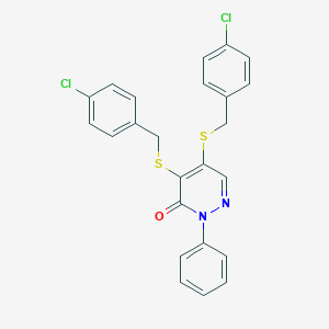 4,5-Bis((4-chlorobenzyl)thio)-2-phenyl-3(2H)-pyridazinone is a useful research compound. Its molecular formula is C24H18Cl2N2OS2 and its molecular weight is 485.4 g/mol. The purity is usually 95%.