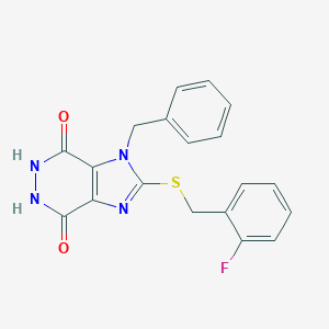 1-Benzyl-2-[(2-fluorobenzyl)sulfanyl]-5,6-dihydro-1h-imidazo[4,5-d]pyridazine-4,7-dione is a useful research compound. Its molecular formula is C19H15FN4O2S and its molecular weight is 382.4 g/mol. The purity is usually 95%.