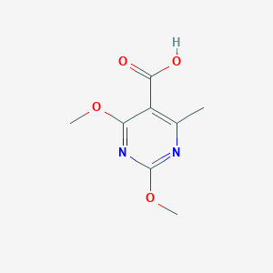 In the realm of organic synthesis, 2,4-Dimethoxy-6-methylpyrimidine-5-carboxylic acid serves as an essential building block for synthesizing more complex heterocyclic compounds. Its structural features allow for various chemical modifications, enabling the creation of derivatives with tailored properties for specific applications.