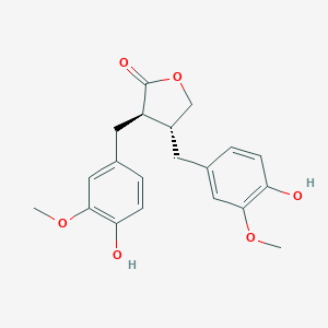 InChI=1S/C20H22O6/c1-24-18-9-12(3-5-16(18)21)7-14-11-26-20(23)15(14)8-13-4-6-17(22)19(10-13)25-2/h3-6,9-10,14-15,21-22H,7-8,11H2,1-2H3/t14-,15+/m0/s1 | |