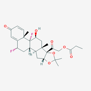 This compound is a synthetic corticosteroid characterized by a complex polycyclic structure derived from the pregnane (B1235032) skeleton. Its molecular formula is C₂₇H₃₄F₂O₇, and it has a molecular weight of approximately 508.5 g/mol nih.govgoogle.comoncodesign-services.comwikipedia.orgnih.gov. The compound's IUPAC name, [2-[(1S,2S,4R,8S,9S,11S,12R,13S,19S)-12,19-difluoro-11-hydroxy-6,6,9,13-tetramethyl-16-oxo-5,7-dioxapentacyclo[10.8.0.0²,⁹.0⁴,⁸.0¹³,¹⁸]icosa-14,17-dien-8-yl]-2-oxoethyl] propanoate, precisely defines its intricate stereochemistry and functional groups nih.govgoogle.comnih.govwikipedia.org. Key structural features include difluoro substitutions, a hydroxyl group at C11, a ketone at C3 and C20, and a propionate (B1217596) ester at the C21 position. Additionally, it possesses a 16,17-acetal moiety, typically formed with acetone (B3395972), which is characteristic of many potent topical corticosteroids nih.govwikipedia.org. The CAS Registry Number for this compound is 58497-00-0 nih.govnih.govwikipedia.org.
