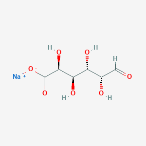 sodium;(2S,3R,4S,5R)-2,3,4,5-tetrahydroxy-6-oxohexanoate: is an organic compound derived from D-galacturonic acid, a sugar acid derived from the monosaccharide galactose. It is commonly used in various scientific and industrial applications due to its unique chemical properties. The compound is often found in the form of a white crystalline powder and is soluble in water.