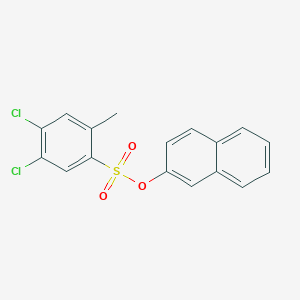 The mechanism of action of Naphthalen-2-yl 4,5-dichloro-2-methylbenzenesulfonate involves its interaction with molecular targets through its sulfonate and naphthalene moieties. These interactions can lead to various biochemical effects, depending on the specific application and target molecule. The exact pathways and targets are subject to ongoing research and may vary based on the context of use.