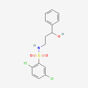The mechanism of action of 2,5-dichloro-N-(3-hydroxy-3-phenylpropyl)benzenesulfonamide involves its interaction with specific molecular targets. The compound can inhibit enzymes by binding to their active sites, thereby preventing substrate binding and subsequent catalytic activity. Additionally, it can interact with receptors or other proteins, modulating their function and signaling pathways.
