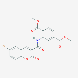Dimethyl 2-{[(6-bromo-2-oxo-2H-chromen-3-yl)carbonyl]amino}terephthalate is a complex organic compound that belongs to the class of coumarin derivatives Coumarins are known for their diverse biological activities and are widely used in medicinal chemistry
