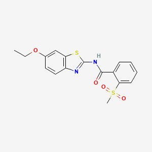 The mechanism of action of N-(6-ethoxybenzo[d]thiazol-2-yl)-2-(methylsulfonyl)benzamide would depend on its specific biological target. Generally, compounds of this nature may interact with enzymes, receptors, or other proteins, leading to modulation of their activity. This interaction can involve binding to the active site or allosteric sites, resulting in inhibition or activation of the target protein.