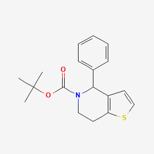 The mechanism of action of tert-butyl 4-phenyl-6,7-dihydro-4H-thieno[3,2-c]pyridine-5-carboxylate depends on its specific application. In medicinal chemistry, it may interact with biological targets such as enzymes or receptors, modulating their activity. The molecular targets and pathways involved can vary, but often include key signaling pathways that regulate cellular processes.