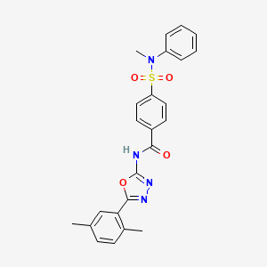 N-[5-(2,5-dimethylphenyl)-1,3,4-oxadiazol-2-yl]-4-[methyl(phenyl)sulfamoyl]benzamide is a synthetic compound notable for its diverse biological activities. This compound belongs to the oxadiazole family, which has garnered attention in medicinal chemistry due to its potential therapeutic applications. The molecular formula for this compound is C23H24N4O3S, with a molecular weight of approximately 440.53 g/mol.