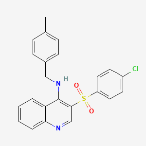 3-((4-chlorophenyl)sulfonyl)-N-(4-methylbenzyl)quinolin-4-amine, a compound with the molecular formula C23H19ClN2O2S and a molecular weight of 422.93 g/mol, is part of the quinoline family. This compound has garnered attention in scientific research due to its potential biological activities, including antimicrobial, antiviral, and anticancer properties. The following sections will delve into its biological activity, mechanisms of action, and relevant research findings.