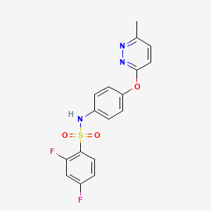 2,4-difluoro-N-(4-((6-methylpyridazin-3-yl)oxy)phenyl)benzenesulfonamide is a chemical compound that belongs to the class of sulfonamides This compound is characterized by the presence of two fluorine atoms at the 2 and 4 positions on the benzene ring, a sulfonamide group, and a 6-methylpyridazin-3-yloxy substituent on the phenyl ring