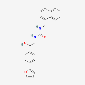 The molecular formula C₂₄H₂₂N₂O₃ (molecular weight: 386.451 g/mol) reflects the integration of a naphthalenylmethyl group, a furan-substituted phenyl ring, and a hydroxyethylurea backbone. The International Union of Pure and Applied Chemistry (IUPAC) name delineates its structure: 1-[2-[4-(furan-2-yl)phenyl]-2-hydroxyethyl]-3-(naphthalen-1-ylmethyl)urea. Key structural features include: