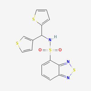 N-(thiophen-2-yl(thiophen-3-yl)methyl)benzo[c][1,2,5]thiadiazole-4-sulfonamide is a complex organic compound that belongs to the class of heterocyclic compounds These compounds are characterized by the presence of sulfur and nitrogen atoms in their ring structures