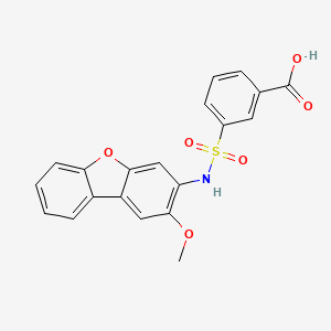 The synthesis of 3-[(2-methoxydibenzofuran-3-yl)sulfamoyl]benzoic Acid typically involves multiple steps, starting with the preparation of the benzofuran core. One common method is the Suzuki–Miyaura coupling reaction, which is widely used for forming carbon-carbon bonds under mild conditions . The reaction involves the coupling of an aryl halide with an organoboron compound in the presence of a palladium catalyst.