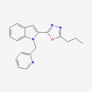 2-propyl-5-(1-(pyridin-2-ylmethyl)-1H-indol-2-yl)-1,3,4-oxadiazole is a heterocyclic compound that features a unique combination of indole, pyridine, and oxadiazole moieties
